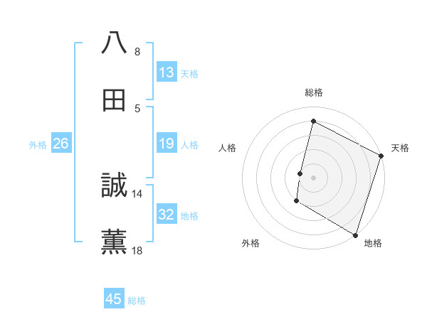 八田 誠薫さんの総格は45画の4点!