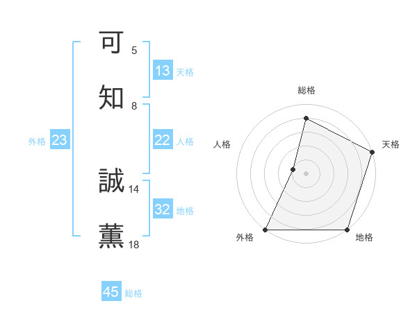 可知 誠薫さんの総格は45画の4点!