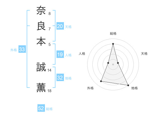 奈良本 誠薫さんの総格は52画の4点!