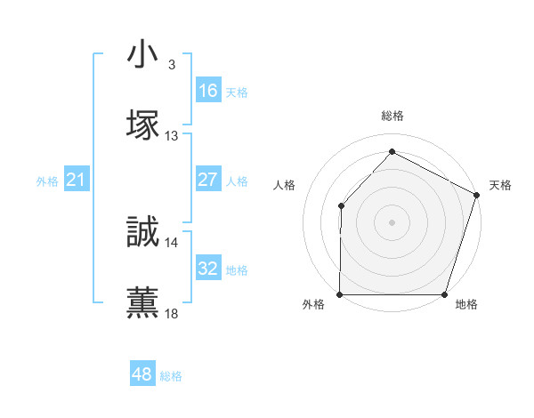 小塚 誠薫さんの天格は16画の5点!