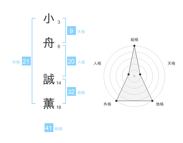 小舟 誠薫さんの外格は21画の5点!