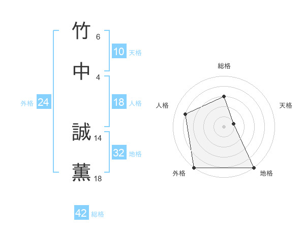 竹中 誠薫さんの総格は42画の3点!