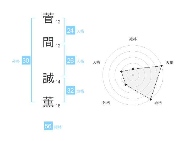 菅間 誠薫さんを姓名の画数から五運を鑑定