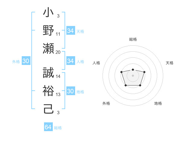 小野瀬 誠裕己さんを姓名の画数から五運を鑑定