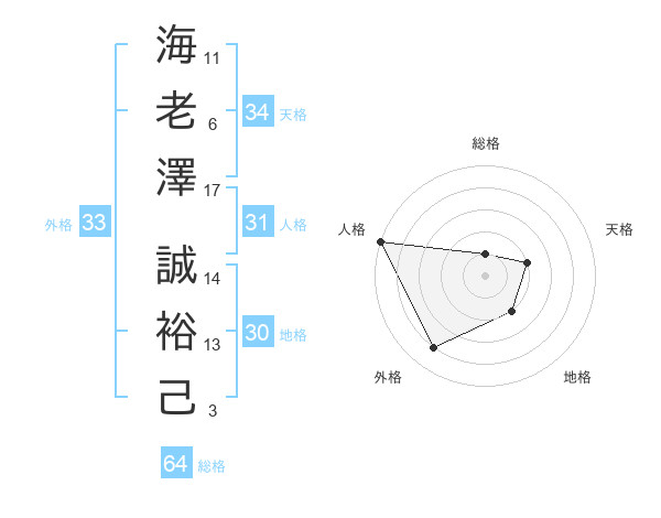 海老澤 誠裕己さんを姓名の画数から五運を鑑定