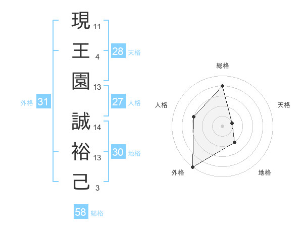 現王園 誠裕己さんを姓名の画数から五運を鑑定