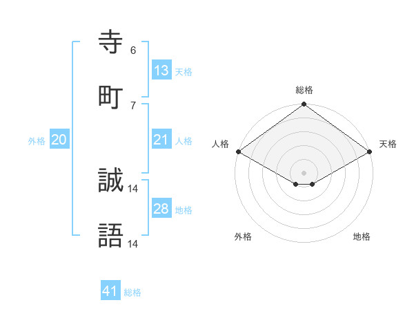 寺町 誠語さんの総格は41画の5点!