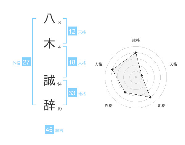 八木 誠辞さんの総格は45画の4点!