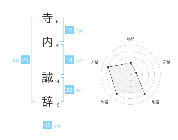 寺内 誠辞さんの総格は43画の2点!