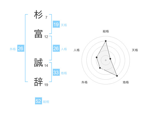 杉富 誠辞さんの総格は52画の4点!