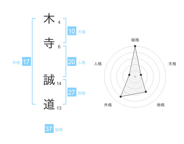 木寺 誠道さんの総格は37画の5点!