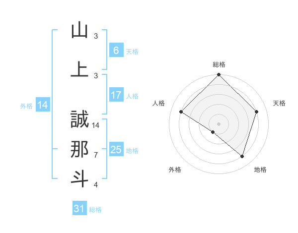 山上 誠那斗さんを姓名の画数から五運を鑑定