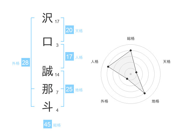 沢口 誠那斗さんを姓名の画数から五運を鑑定