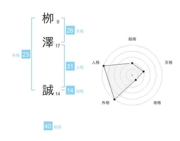 栁澤 誠さんの地格は14画の1点!