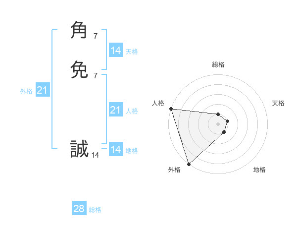 角免 誠さんの外格は21画の5点!