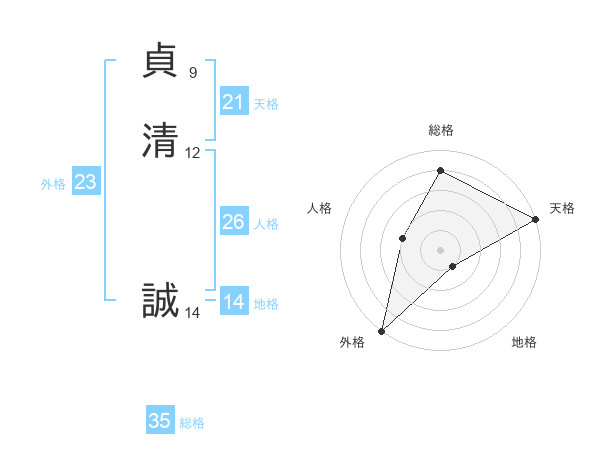 貞清 誠さんの総格は35画の4点!