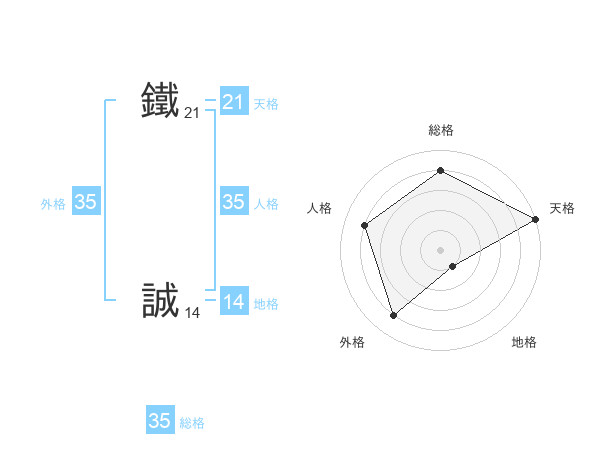鐵 誠さんの総格は35画の4点!