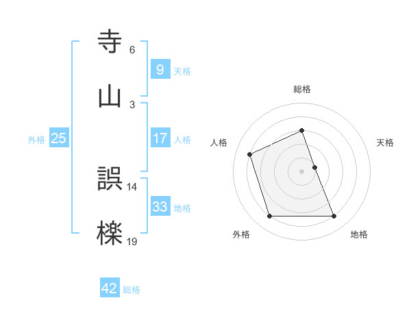 寺山 誤檪さんを姓名の画数から五運を鑑定