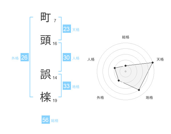 町頭 誤檪さんの天格は23画の5点!