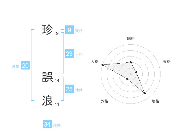 珍 誤浪さんの総格は34画の2点!