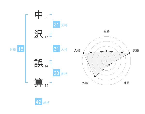 中沢 誤算さんの天格は21画の5点!