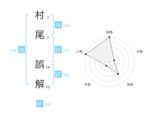 村尾 誤解さんの総格は41画の5点!