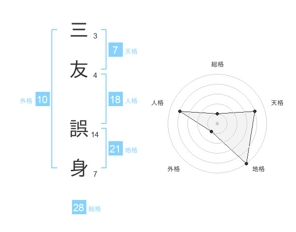 三友 誤身さんの地格は21画の5点!