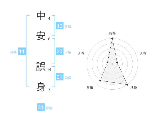 中安 誤身さんの総格は31画の5点!