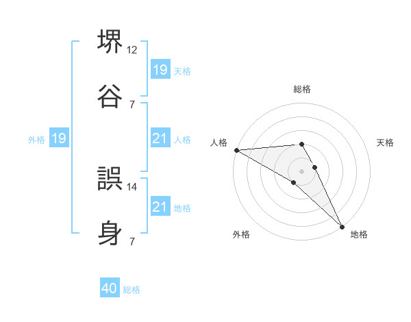 堺谷 誤身さんを姓名の画数から五運を鑑定