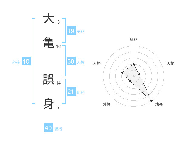 大亀 誤身さんの外格は10画の1点!