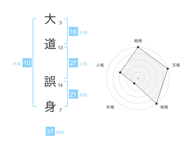 大道 誤身さんの総格は37画の5点!