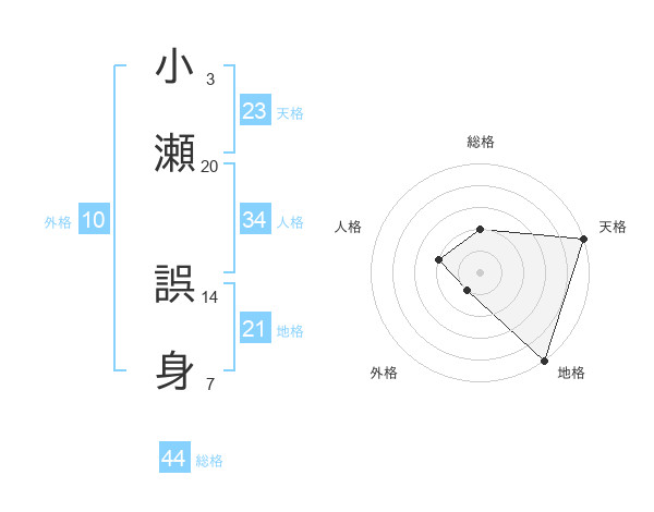小瀬 誤身さんを姓名の画数から五運を鑑定