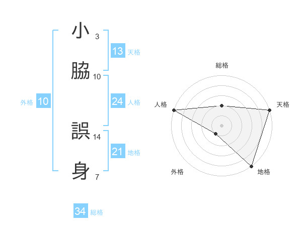 小脇 誤身さんの総格は34画の2点!