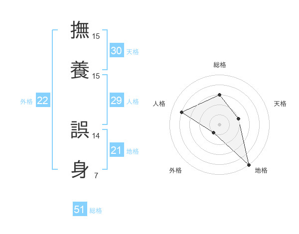 撫養 誤身さんの総格は51画の3点!