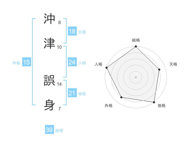 沖津 誤身さんを姓名の画数から五運を鑑定
