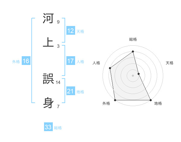河上 誤身さんの総格は33画の4点!