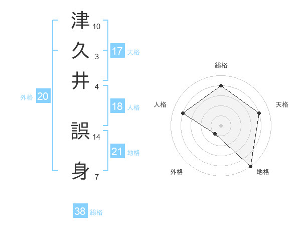 津久井 誤身さんを姓名の画数から五運を鑑定