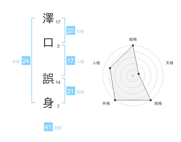 澤口 誤身さんの総格は41画の5点!