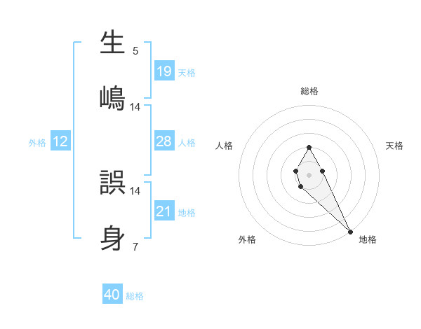 生嶋 誤身さんの総格は40画の2点!