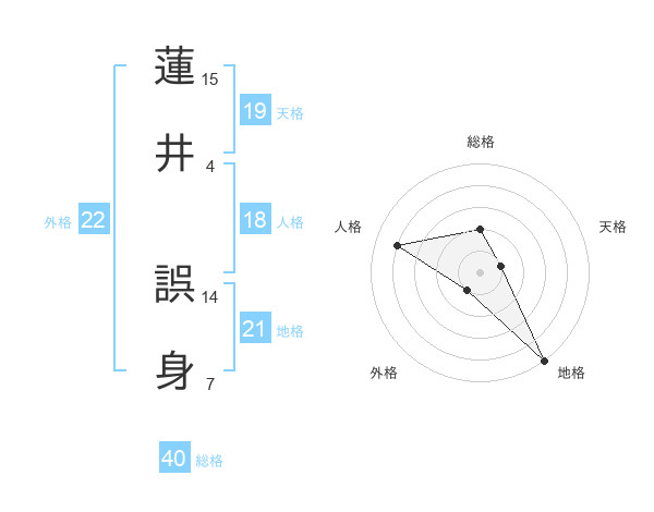 蓮井 誤身さんを姓名の画数から五運を鑑定