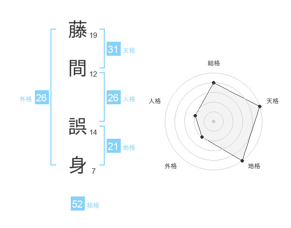 藤間 誤身さんの総格は52画の4点!