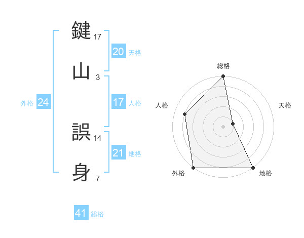 鍵山 誤身さんを姓名の画数から五運を鑑定