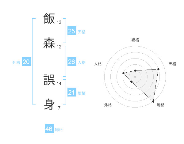 飯森 誤身さんの総格は46画の1点!
