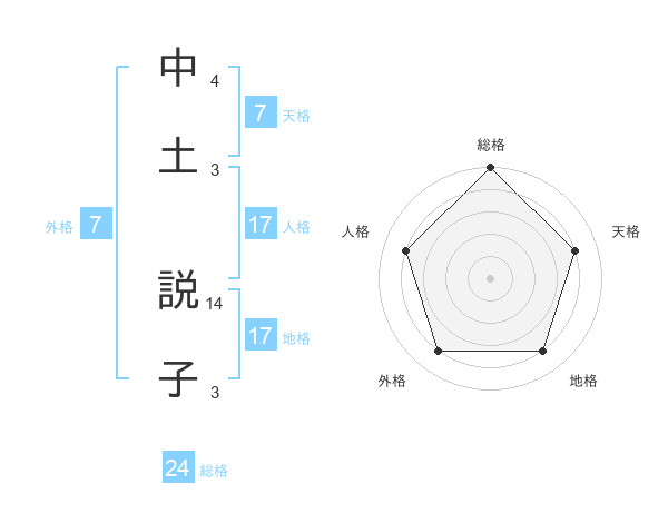中土 説子さんの総格は24画の5点!