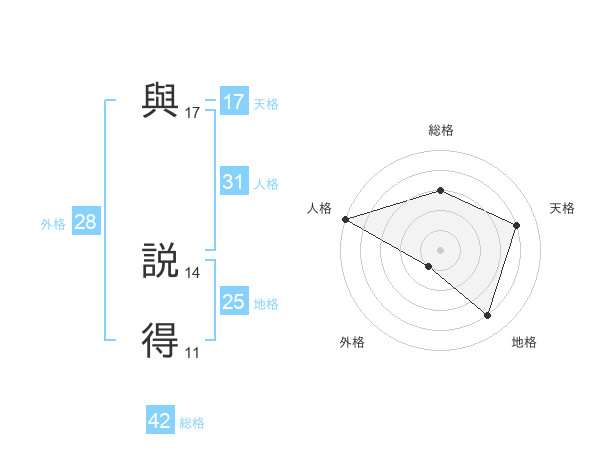 與 説得さんの天格は17画の4点!