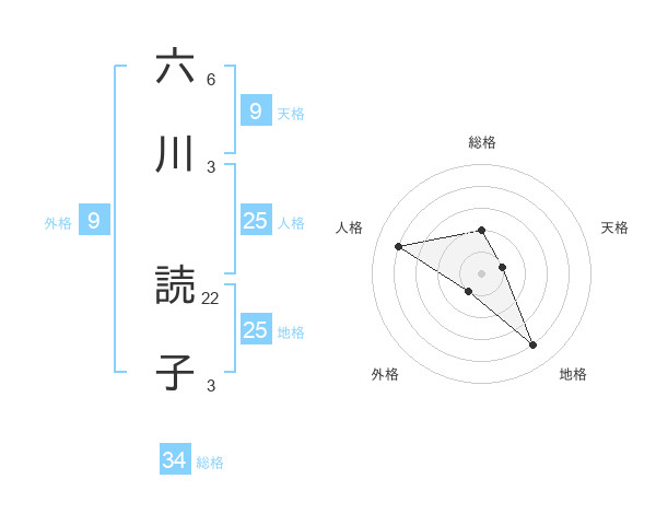 六川 読子さんの総格は34画の2点!