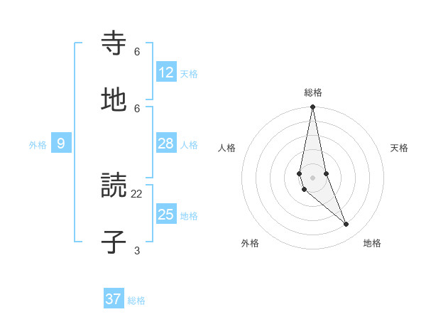 寺地 読子さんの総格は37画の5点!