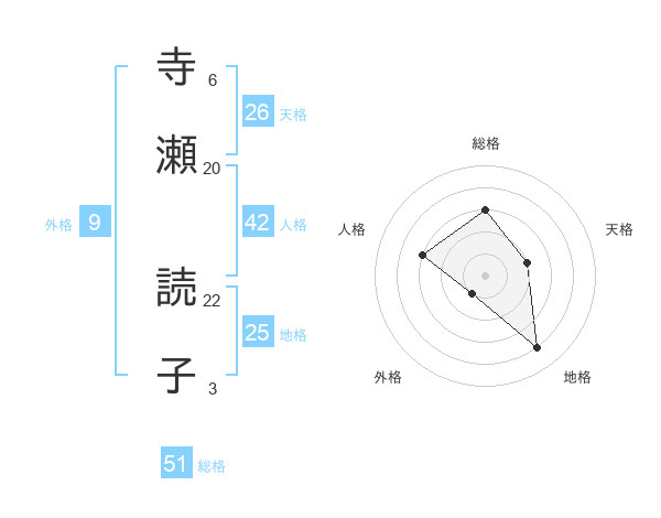 寺瀬 読子さんの総格は51画の3点!