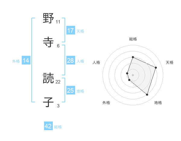 野寺 読子さんの天格は17画の4点!