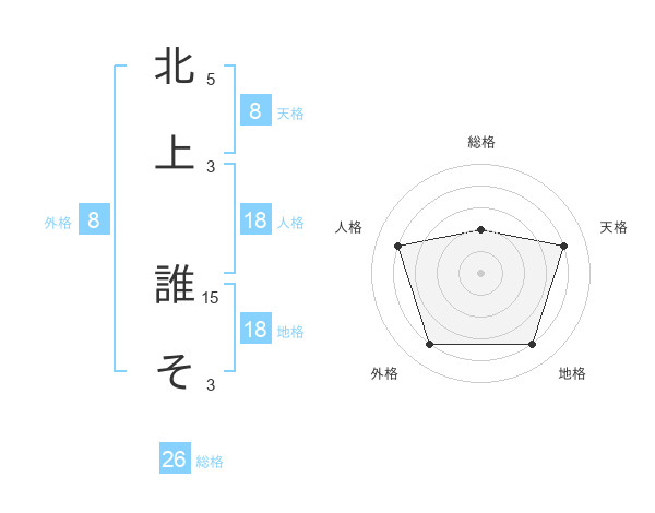 北上 誰そさんの総格は26画の2点!